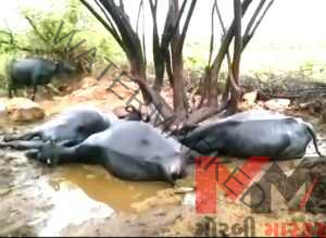 મોરબી જીલ્લામા કડાકા ભડાકા સાથે વરસાદ વરસ્યો હળવદ તાલુકાના સુખપર ગામે વીજળી પડવાથી ત્રણ અબોલ પશુ ભેંસોએ જીવ ગુમાવ્યો