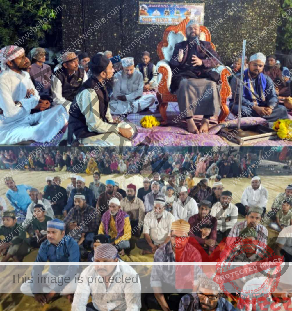 મોરબી શ્રીજીપાર્ક સોસાયટીના સાર્વજનિક પ્લોટમા રાત્રે ઈશા નમાઝ બાદ વાયેઝશરીફનુ ભવ્ય આયોજન કરવામા આવ્યુ હતુ જેમા સૈયદ ફૈઝુલ્લાબાવા કાઝમી વલ કાદરી ગૌસપાકની શાનમા જોશીલી જુબાનથી વાયેજશરીફ બયાન કર્યુ હતુ આ વાયેઝશરીફમા આશીકે ગૌસપાકના ચાહકો દ્રારા ગૌસેઆઝમના નારાઓ સાથે શ્રીજીપાર્ક સોસાયટી ગુંજી ઉઠી હતી તેમજ ગોંડલથી સૈયદ બાયઝિદબાપુ બરકાતી હાજરી અને નાતખ્વા સૈયદ વારીશબાપુ (રાજકોટ) નાતશરીફની ધુમ મચાવી હતી