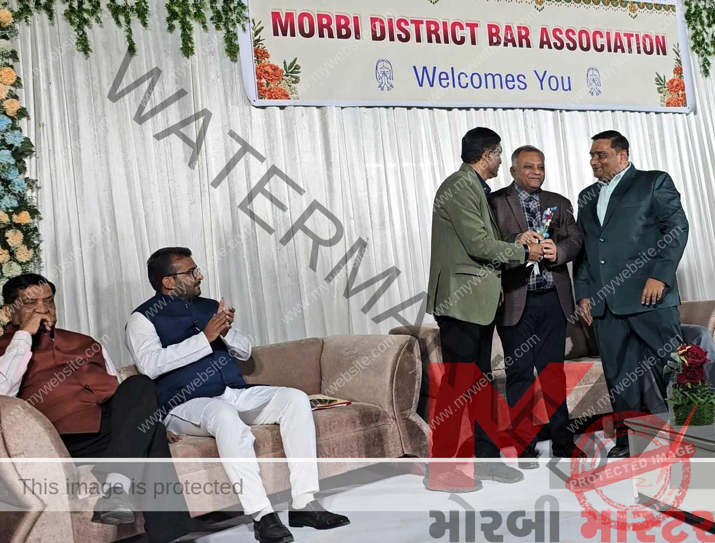 મોરબી બાર એસોસિયેશનના પ્રમુખ દિલીપભાઈ અગેચાણીયાની એકટીવ પેનલની જીત બાદ જશ્ન પ્રિન્સિપાલ ડિસ્ટ્રિકટ સેશન્સ જજશ્રીઓ અને બાર કાઉન્સિલ ઓફ ઈન્ડિયાના વાઈસ ચેરમેનશ્રી દિલિપભાઈ પટેલ અને રાજકોટ બારના પ્રમુખશ્રી સુમિતભાઈ વોરા સહિતનાઓએ આપી હાજરી